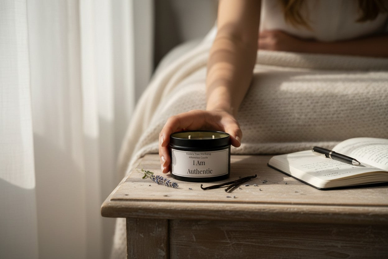 I Am Authentic opens with a bright, unapologetic burst of citrus, lemon, lime, and grapefruit, like laughter before you learned to tone it down. As it burns, soft orange and calming lavender emerge, carrying the comfort of familiarity and ease. The scent settles into warm vanilla and grounding sandalwood, anchoring joy into safety.